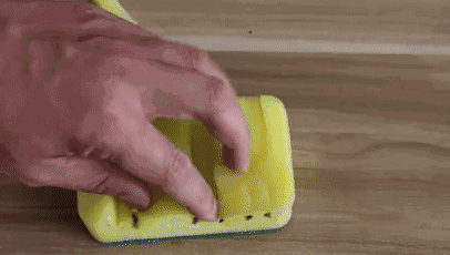 先把海綿放在窗沿上,用筆沿著凹凸處一一描點標記,再用剪刀沿著點修剪海綿,使其剛好能安放在窗縫處。倒入適量清潔劑,放上修好的海綿來回擦拭,不用多久就很干凈啦!