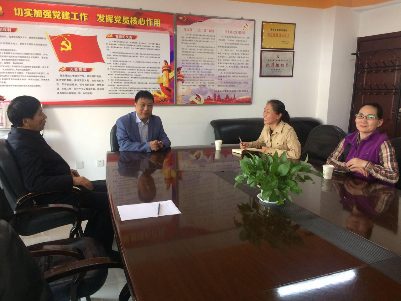 公司黨支部李書記首先將我公司黨支部的情況向她們做了簡單介紹,隨后詳細(xì)說明了我公司按照市非公黨委的要求開展“改革創(chuàng)新、奮發(fā)有為”大討論活動的情況。