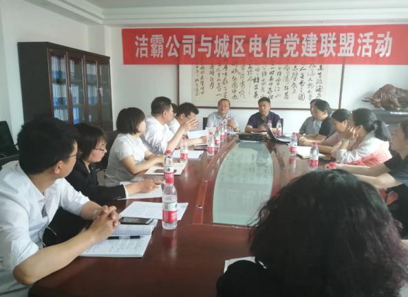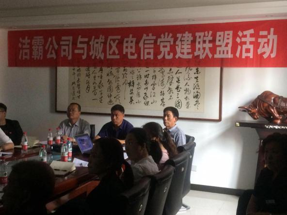 5月27日下午,潔霸公司黨支部與城區(qū)電信東城西城聯(lián)合黨支部開(kāi)展了黨建聯(lián)盟活動(dòng)。首先雙方對(duì)公司的概況以及黨支部成員的構(gòu)成做了詳細(xì)的介紹?偨(jīng)理程晉軍及支部書記李山虎對(duì)城區(qū)電信公司黨支部成員的到來(lái)表示了熱烈的歡迎。