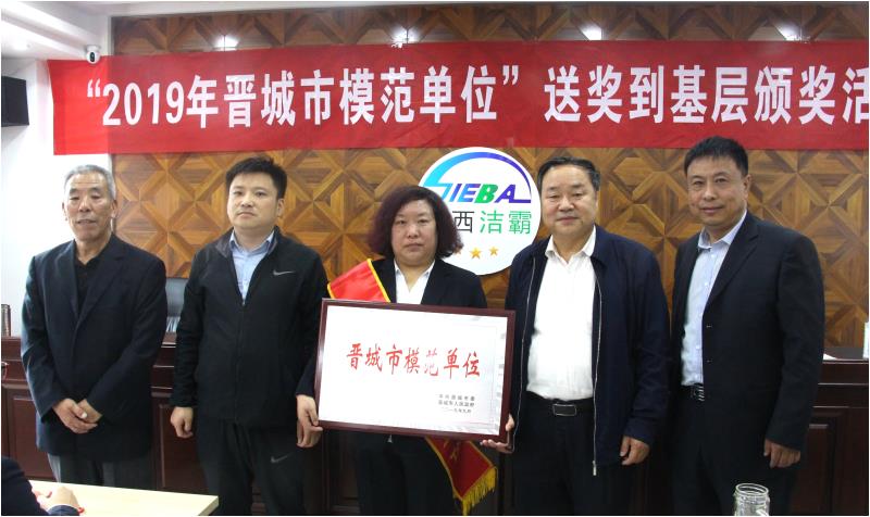 10月11日上午,晉城市總工會副調(diào)研員刁忠孝、商貿(mào)工會主席張玉濤、商貿(mào)工會干事李艷艷一行蒞臨公司舉行“2019年晉城市模范單位”送獎到基層頒獎活動,向公司榮獲“晉城市模范單位”表示祝賀,公司黨支部書記、總經(jīng)理程晉軍、公司副總經(jīng)理史志霞、公司原黨支部書記李山虎以及公司部分員工代表參加頒獎活動。公司工會主席崔偉主持了頒獎儀式。
