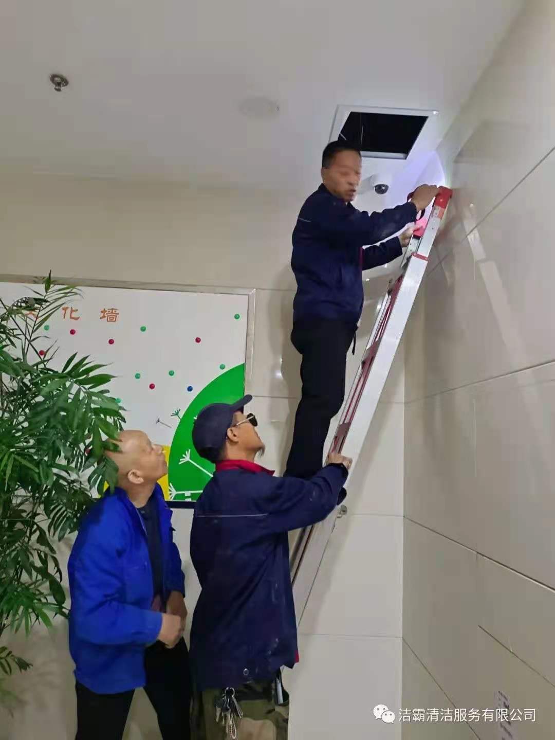 工程部的李新芳和郭軍田兩位師傅,有著豐富的工作經(jīng)驗,他們順著污水主管道,敲敲打打,根據(jù)聲音辨別堵塞部位。尋找病癥部位比較容易,但治療起來太艱難。管道在二樓與三樓之間,A單元樓下農(nóng)商銀行的天花板里。施工場地離地面四五米高,施工要爬高上梯且空間狹窄逼仄,天花板一處開口勉強能容一個人鉆進去,給施工造成很大困難。