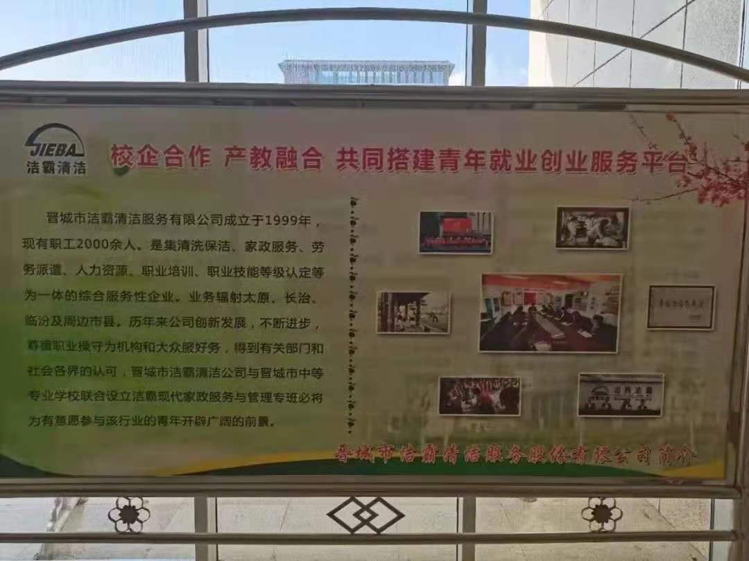 5月25日,是晉城市中等專業(yè)學(xué)校的“家長(zhǎng)開放日”;顒(dòng)當(dāng)天,晉城潔霸清潔服務(wù)股份有限公司攜手晉城市中等專業(yè)學(xué)校,共同開展了“校企合作,產(chǎn)教融合, 共同搭建青年就業(yè)創(chuàng)業(yè)服務(wù)平臺(tái)”主題活動(dòng)。