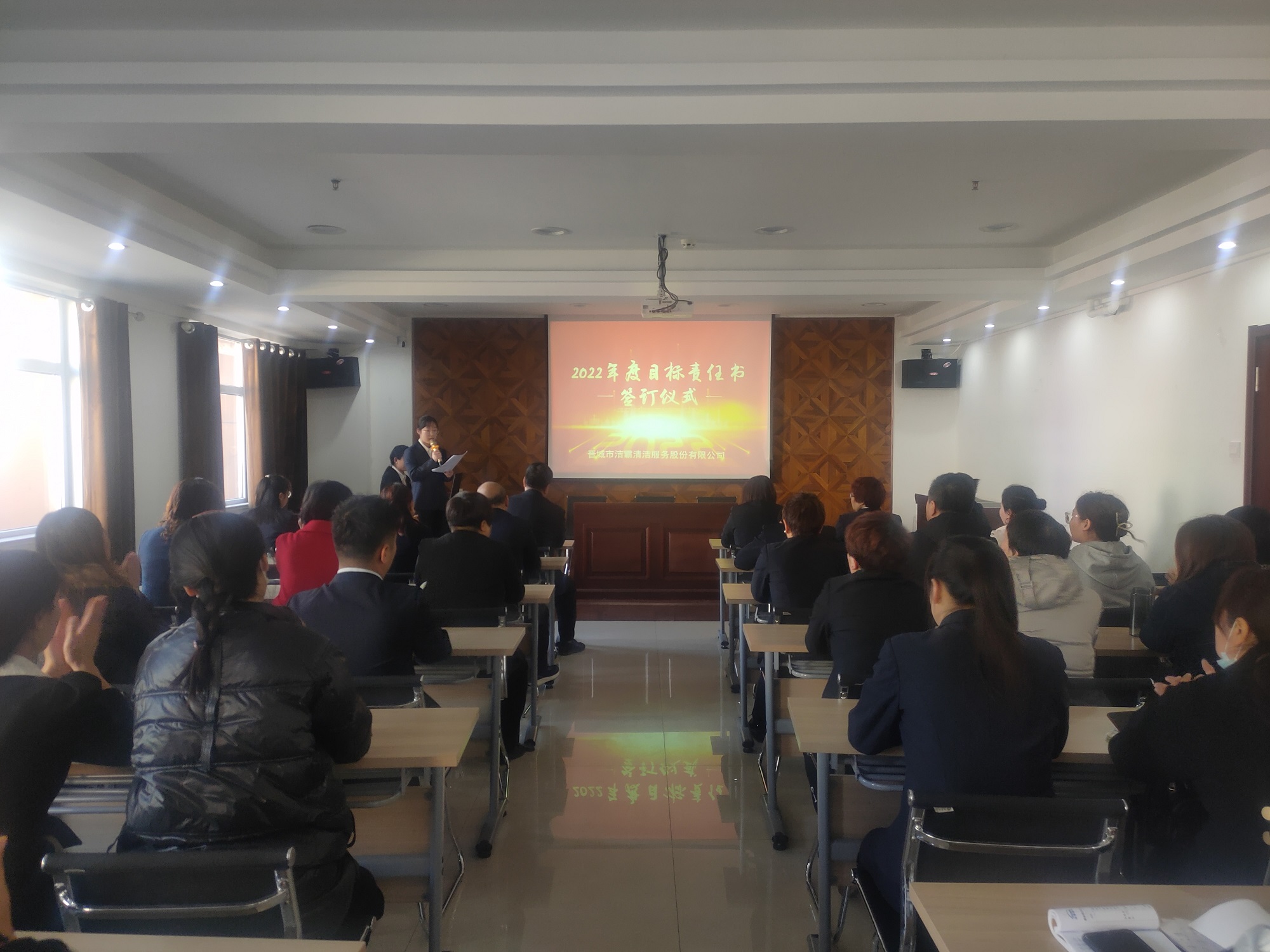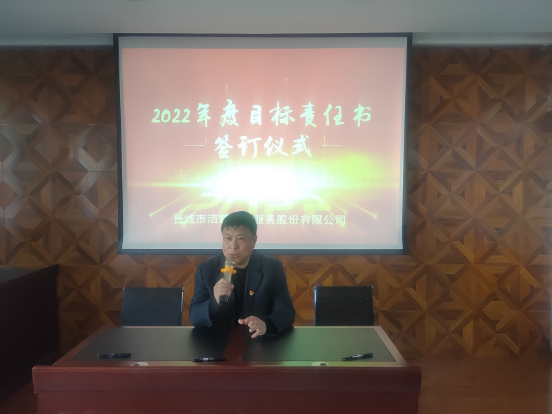 為落實(shí)公司2022年工作會(huì)議精神,進(jìn)一步壓實(shí)責(zé)任,確保年度工作目標(biāo)的順利完成, 3月1日下午,晉城市潔霸清潔服務(wù)股份有限公司在活動(dòng)中心組織召開(kāi)2022年度目標(biāo)責(zé)任書簽訂會(huì)議。公司黨支部書記、總經(jīng)理程晉軍,副總經(jīng)理張永智、史志霞,經(jīng)理助理,各子公司、分公司、部門經(jīng)理及項(xiàng)目負(fù)責(zé)人、主管等參加會(huì)議。