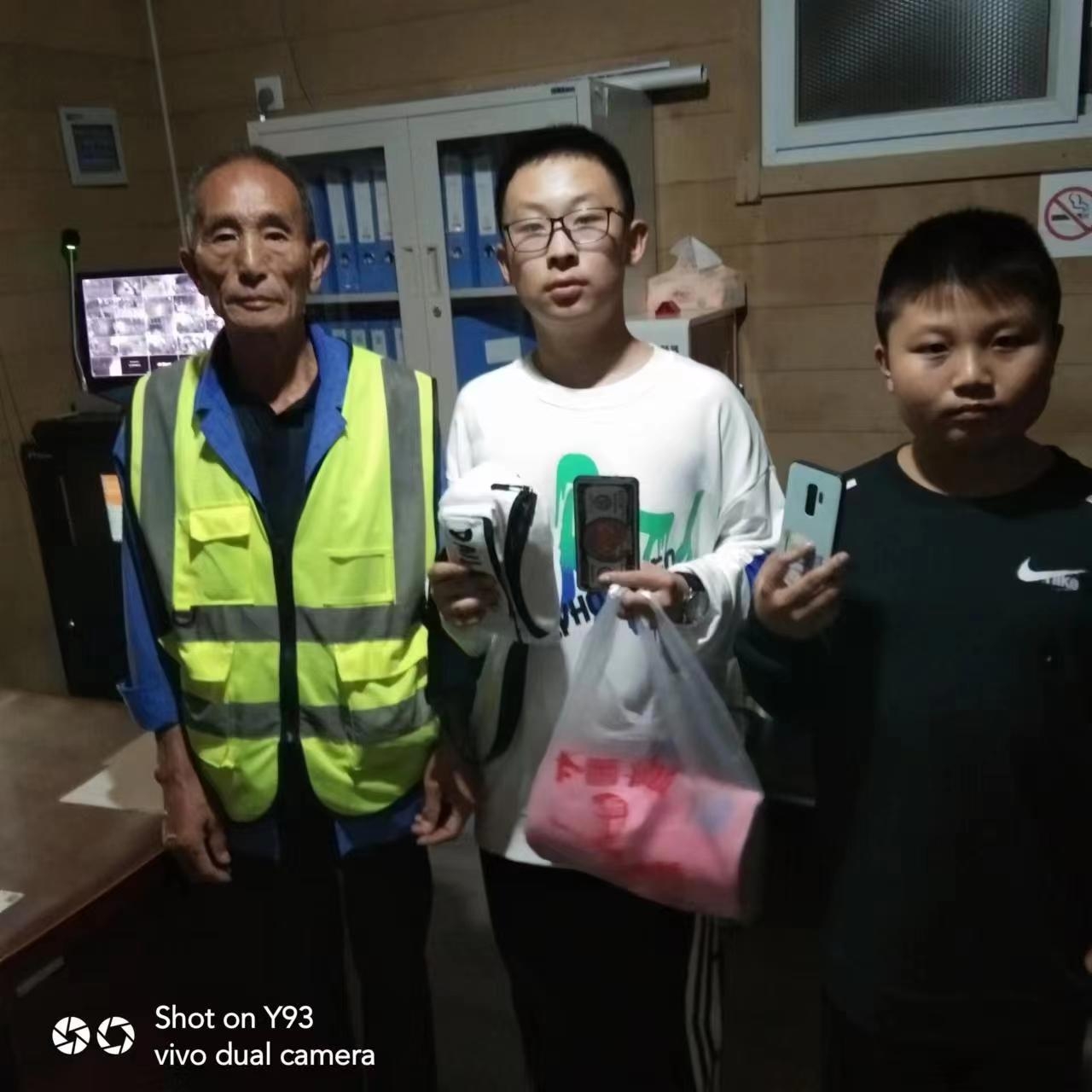 10月3日晚8點(diǎn)左右,人民廣場(chǎng)保潔員崔來(lái)會(huì)當(dāng)夜值班打掃,當(dāng)他打掃到小廣場(chǎng)下面區(qū)域時(shí),發(fā)現(xiàn)在臺(tái)階上放著一本書和一個(gè)包,他環(huán)顧四周,沒有人影。崔師傅忙叫來(lái)保安,打開包發(fā)現(xiàn)包里有一個(gè)錢包和兩部手機(jī),害怕失主著急,他們第一時(shí)間將物品上交到廣場(chǎng)值班室。半個(gè)小時(shí)后,兩個(gè)孩子尋到值班室成功取回了包和手機(jī),并表示感謝。
