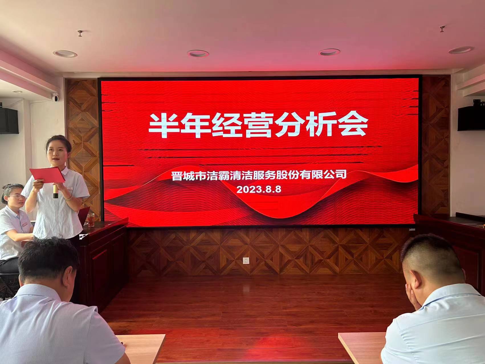 8月8日下午,晉城市潔霸清潔服務(wù)股份有限公司在黨群活動中心召開上半年經(jīng)營分析會議,總結(jié)上半年經(jīng)營運行情況,研判當(dāng)前經(jīng)濟(jì)形勢,分析存在的矛盾和問題,找準(zhǔn)薄弱環(huán)節(jié),研究制定應(yīng)對措施和解決方案,并安排部署下半年的經(jīng)濟(jì)工作。公司總經(jīng)理程晉軍、副總經(jīng)理張永智、史志霞、張小梅出席會議,公司下屬各子公司、分公司經(jīng)理、各部門負(fù)責(zé)人及主管以上人員參加會議。
