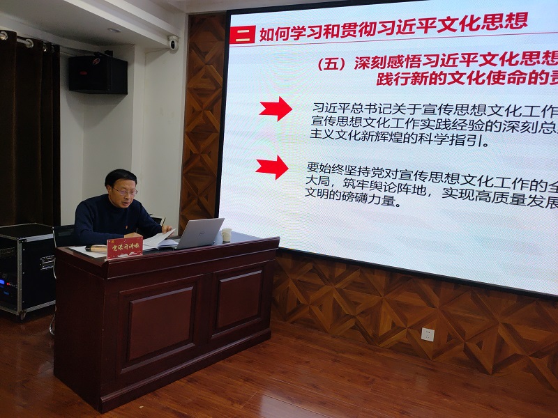 為深入學(xué)習(xí)貫徹習(xí)近平新時(shí)代中國特色社會(huì)主義思想主題教育,提高黨員的政治素養(yǎng)和黨性修養(yǎng),12月20日,市非公企業(yè)黨委委員郝天順以《深入學(xué)習(xí)貫徹習(xí)近平文化思想 進(jìn)一步推進(jìn)非公企業(yè)文化建設(shè)》為題為公司支部全體黨員和入黨積極分子講授了一堂主題教育專題黨課。