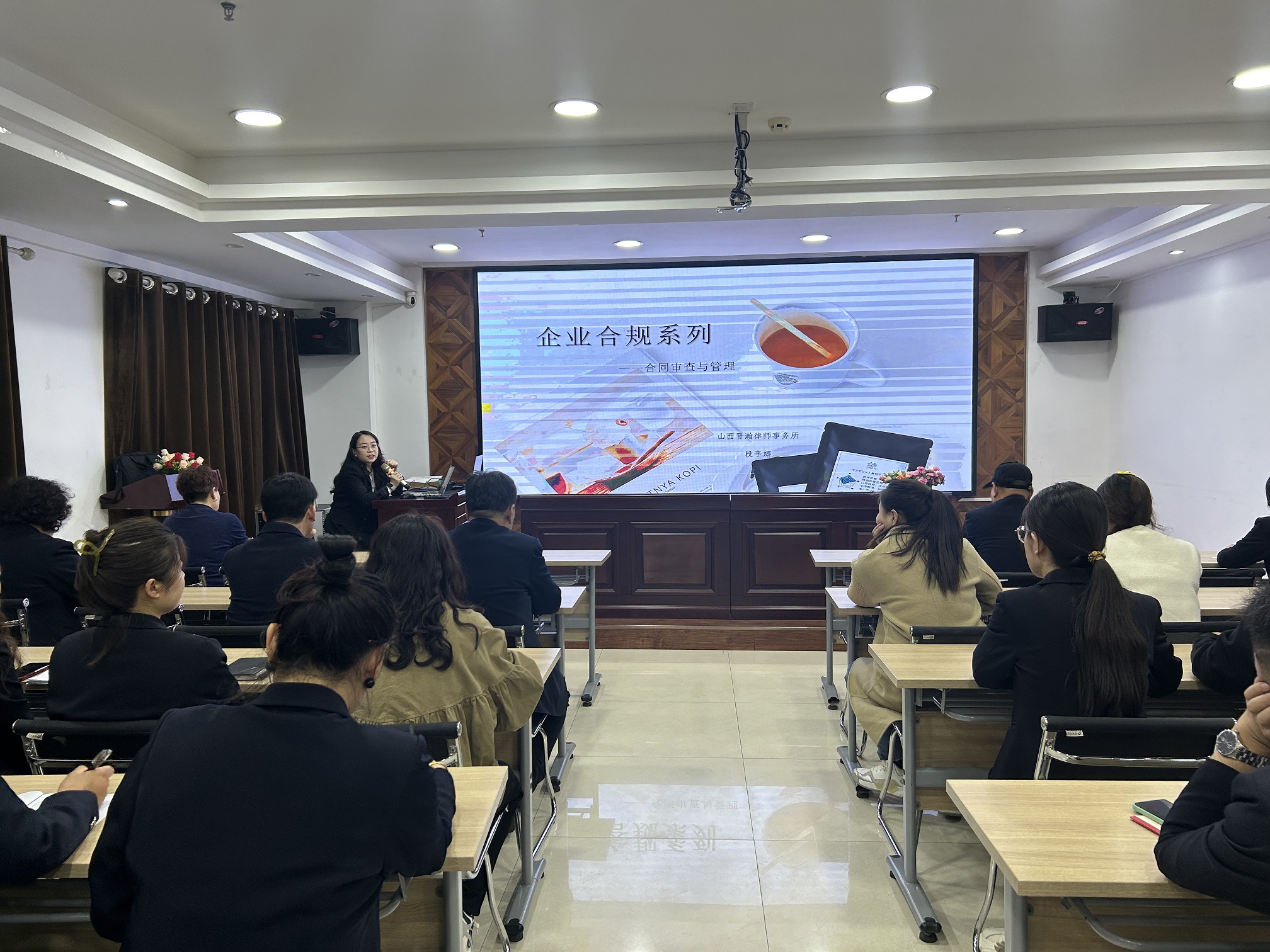 為加強(qiáng)企業(yè)合規(guī)管理,防控合規(guī)風(fēng)險(xiǎn),提升公司管理人員素質(zhì),3月14日,公司在黨群活動中心舉辦專題培訓(xùn),邀請山西晉瀚律師事務(wù)所段李娜律師對企業(yè)合規(guī)系列重點(diǎn)對合同的審查與管理進(jìn)行了解讀。公司領(lǐng)導(dǎo)、各部門經(jīng)理及部分管理人員30余人參加培訓(xùn)。
