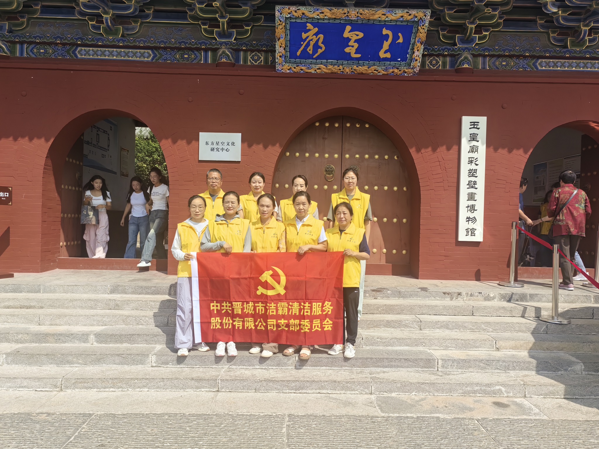 按照玉皇廟工作人員的安排,公司支部黨員和入黨積極分子化身為秩序維護(hù)員,在廟內(nèi)的不同區(qū)域配合安保人員開(kāi)展文物保護(hù)、安全維護(hù)等工作。引導(dǎo)游客游覽路線;提醒游客看管好隨身物品;提醒游客在拍攝文物時(shí)不得使用閃光燈輔助光源,關(guān)閉相機(jī)對(duì)焦輔助燈;為游客看護(hù)寵物等等,積極為游客營(yíng)造安全、有序的旅游環(huán)境。利用中午吃飯休息的時(shí)間,大家參觀了玉皇殿、成湯殿、二十八宿殿等,觀看了噓幻生真古代彩塑藝術(shù)展,了解了不同時(shí)期的代表性彩繪泥塑和制作過(guò)程,更加堅(jiān)定了文化自信。