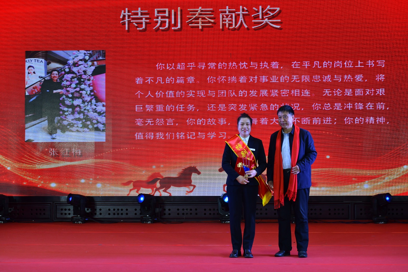 穿插于節(jié)目間的多輪幸運(yùn)抽獎(jiǎng),不時(shí)掀起晚會(huì)的小高潮。豐厚的獎(jiǎng)品承載集團(tuán)對(duì)員工的殷切祝福,每一次大屏幕的滾動(dòng)都牽動(dòng)著全場(chǎng)心弦,中獎(jiǎng)?wù)叩臍g呼與掌聲交織,掀起一波波歡樂(lè)高潮。 2025年度表彰環(huán)節(jié)莊嚴(yán)而熱烈。一批在2025年度工作中表現(xiàn)卓越的“優(yōu)秀經(jīng)理”“優(yōu)秀主管”“技術(shù)標(biāo)兵”“優(yōu)秀員工”“先進(jìn)個(gè)人”等依次登上榮耀的舞臺(tái),他們來(lái)自不同的工作崗位,但都是愛(ài)崗敬業(yè)、精益求精、勇于擔(dān)當(dāng)?shù)牡浞丁9绢I(lǐng)導(dǎo)為他們頒發(fā)榮譽(yù)證書與獎(jiǎng)杯,全場(chǎng)響起經(jīng)久不息的掌聲,這是對(duì)奮斗者最高的禮贊。